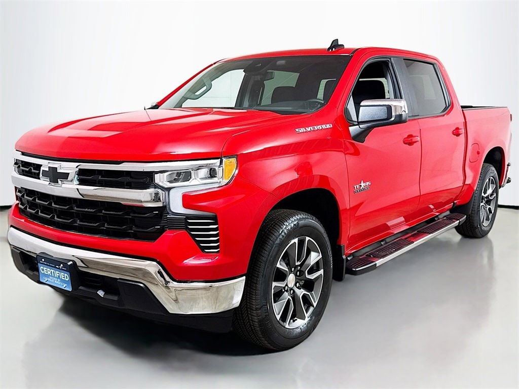 2025 Chevrolet Silverado 1500 LT Texas Edition Chevrolet Certified Pre-Owned Certified, 10-Speed Automatic, Black Cloth, 10-Way Power Driver Seat w/Lumbar, 12.3 Multicolor Reconfigurable Digital Display, 120-Volt Bed Mounted Power Outlet, 120-Volt Interior Power Outlet, 170 Amp Alternator, 2 USB Data Ports, 220 Amp Alternator, 3.23 Rear Axle Ratio, 4-Wheel Disc Brakes, 40/20/40 Front Split-Bench Seat, 6 Speakers, 6-Speaker Audio System, 6 Rectangular Chrome Tubular Assist Steps (LPO), ABS brakes, Air Conditioning, All-Star Edition, Alloy wheels, AM/FM radio: SiriusXM with 360L, Apple CarPlay/Android Auto, Auto High-beam Headlights, Auto-Locking Rear Differential, Automatic Emergency Braking, Automatic temperature control, Auxiliary External Transmission Oil Cooler, Bluetooth® For Phone, Brake assist, Bumpers: chrome, Chrome Mirror Caps, Cloth Seat Trim, Color-Keyed Carpeting Floor Covering, Compass, Convenience Package, Convenience Package II, Deep-Tinted Glass, Delay-off headlights, Driver door bin, Driver vanity mirror, Dual front impact airbags, Dual front side impact airbags, Dual Rear USB Ports (Charge Only), Dual-Zone Automatic Climate Control, Electric Rear-Window Defogger, Electronic Cruise Control, Electronic Stability Control, Electronic Transmission Range Selector Shifter, Emergency communication system: OnStar, External Engine Oil Cooler, EZ Lift Power Lock & Release Tailgate, Floor Mounted Center Console, Following Distance Indicator, Forward Collision Alert, Front anti-roll bar, Front Black Bowtie Emblem (LPO), Front Bucket Seats, Front Center Armrest w/Storage, Front dual zone A/C, Front License Plate Kit, Front Pedestrian Braking, Front reading lights, Front Rubberized Vinyl Floor Mats, Front wheel independent suspension, Fully automatic headlights, HD Rear Vision Camera, Heated door mirrors, Heated Driver & Front Outboard Passenger Seats, Heated front seats, Heated Power-Adjustable Outside Mirrors, Heated Steering Wheel, Heated steering wheel, High Capacity Suspension Package, Hitch Guidance, Hitch Guidance w/Hitch View, Illuminated entry, In-Vehicle Trailering System App, Inside Rear-View Mirror w/Tilt, Integrated Trailer Brake Controller, IntelliBeam Automatic High Beam On/Off, Keyless Open & Start, Lane Keep Assist w/Lane Departure Warning, LED Cargo Area Lighting, Low tire pressure warning, Manual Tilt/Telescoping Steering Column, Multi-Flex Tailgate, Occupant sensing airbag, OnStar Services Capable, Outside temperature display, Overhead airbag, Overhead console, Panic alarm, Passenger door bin, Passenger vanity mirror, Power door mirrors, Power driver seat, Power Front Windows w/Driver Express Up/Down, Power Front Windows w/Passenger Express Down, Power Rear Windows w/Express Down, Power Sliding Rear Window w/Rear Defogger, Power steering, Power windows, Preferred Equipment Group 1LT, Premium audio system: Chevrolet Infotainment 3 Premium, Radio data system, Radio: Chevrolet Infotainment 3 Premium System, Rear 60/40 Folding Bench Seat (Folds Up), Rear reading lights, Rear Rubberized-Vinyl Floor Mats, Rear step bumper, Rear window defroster, Remote keyless entry, Remote Start Package, Remote Vehicle Starter System, Security system, SiriusXM w/360L Trial Subscription, Speed control, Speed-sensing steering, Split folding rear seat, Standard Suspension Package, Standard Tailgate, Steering Wheel Audio Controls, Steering wheel mounted audio controls, Tachometer, Teen Driver, Telescoping steering wheel, Texas Edition Badging, Theft Deterrent System (Unauthorized Entry), Tilt steering wheel, Tire Pressure Monitoring System, Traction control, Trailering Package, Trip computer, Universal Home Remote, Variably intermittent wipers, Voltmeter, Wheels: 17 x 8 Bright Silver Painted Aluminum, Wheels: 20 x 9 Painted Aluminum, Wi-Fi Hot Spot Capable, Wireless Charging, Wrapped Steering Wheel, 10-Speed Automatic, Black Cloth.Odometer is 6678 miles below market average! Clean CARFAX. Chevrolet Certified Pre-Owned