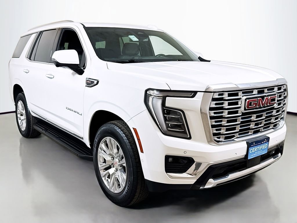 2025 GMC Yukon Denali 4WD, 10 Speakers, 15 Diagonal Multi-Color Head-Up Display, 3.23 Rear Axle Ratio, 3rd row seats: split-bench, 4-Way Power Driver Lumbar Seat Adjuster, 4-Way Power Front Passenger Lumbar Seat Adjuster, 4-Wheel Disc Brakes, ABS brakes, Adaptive suspension, Air Conditioning, Alloy wheels, AM/FM radio: SiriusXM with 360L, Apple CarPlay/Android Auto, Audio memory, Auto High-beam Headlights, Auto-dimming door mirrors, Auto-dimming Rear-View mirror, Auto-leveling suspension, Automatic temperature control, AutoSense Hands-Free Power Liftgate, Bodyside moldings, Bose 10-Speaker Surround with CenterPoint, Brake assist, Bright Front and Rear Door Sill Plates, Bumpers: body-color, Compass, Delay-off headlights, Deleted OnStar Basics, Driver door bin, Driver vanity mirror, Dual Exhaust System, Dual front impact airbags, Dual front side impact airbags, Electronic Stability Control, Emergency communication system: OnStar and GMC connected services capable, Exterior Parking Camera Rear, Four wheel independent suspension, Front anti-roll bar, Front Bucket Seats, Front Center Armrest, Front dual zone A/C, Front fog lights, Front reading lights, Fully automatic headlights, Galvano Bodyside Moldings, Garage door transmitter, Heads-Up Display, Heated door mirrors, Heated Driver and Front Passenger Seats, Heated front seats, Heated rear seats, Heated steering wheel, Illuminated entry, License Plate Front Mounting Package, Low tire pressure warning, Magnetic Ride Control Suspension, Memory seat, Navigation system: GMC Connected Navigation, Occupant sensing airbag, Outside temperature display, Overhead airbag, Overhead console, Panic alarm, Passenger door bin, Passenger vanity mirror, Perforated Heather and Ventilated Driver and Front Passenger Seats, Perforated Leather Seating Surfaces, Power door mirrors, Power driver seat, Power Liftgate, Power passenger seat, Power Release 2nd Row Bucket Seats, Power steering, Power Tilt and Telescopic Steering Column, Power windows, Preferred Equipment Group 5SA, Radio: 16.8 Diagonal Premium GMC Infotainment System, Rain sensing wipers, Rear air conditioning, Rear anti-roll bar, Rear reading lights, Rear window defroster, Rear window wiper, Remote keyless entry, Security system, SiriusXM with 360L, Speed control, Speed-sensing steering, Split folding rear seat, Spoiler, Steering wheel memory, Steering wheel mounted audio controls, Tachometer, Telescoping steering wheel, Tilt steering wheel, Traction control, Trip computer, Turn signal indicator mirrors, Variably intermittent wipers, Ventilated front seats, Voltmeter, Wheels: 20 x 9 6-Spoke Polished Aluminum, 4WD.