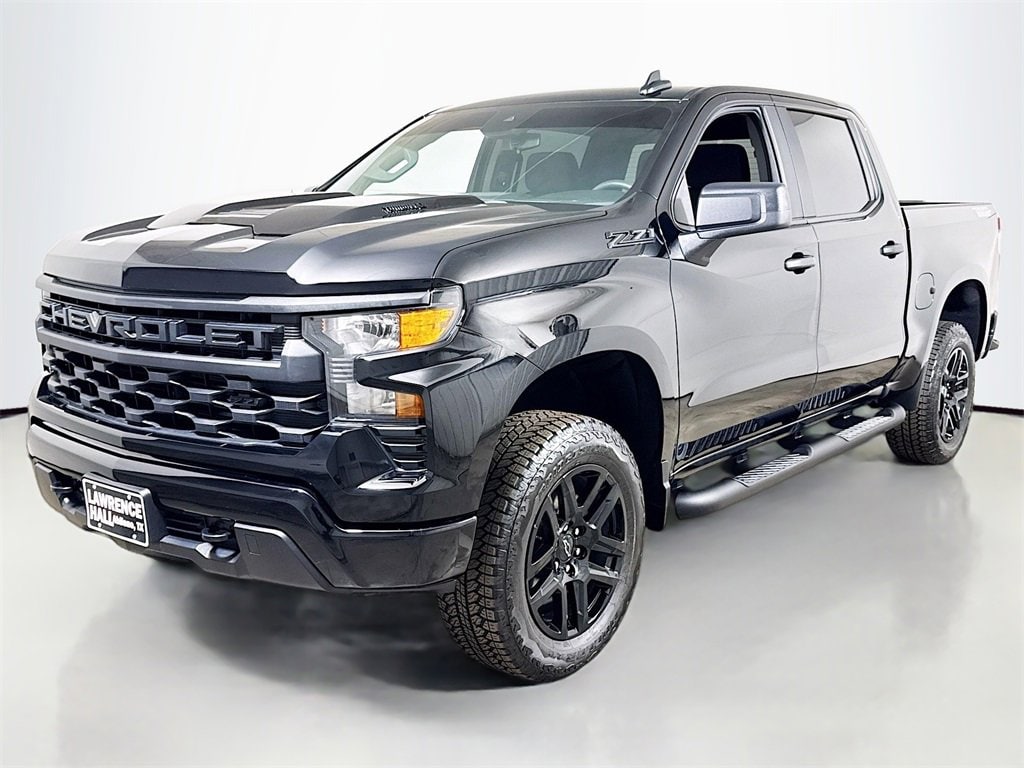 2026 Chevrolet Silverado 1500 Custom Trail Boss 8-Speed Automatic, 4WD, Black Cloth, 10-Way Power Driver Seat w/Lumbar, 120-Volt Bed Mounted Power Outlet, 120-Volt Interior Power Outlet, 220 Amp Alternator, 3.42 Rear Axle Ratio, 3.5 Monochromatic Display Driver Info Center, 4-Wheel Disc Brakes, 4 Black Round Assist Steps (LPO), 40/20/40 Front Split-Bench Seat, 6 Speakers, 6-Speaker Audio System, ABS brakes, Air Conditioning, All-Weather Floor Liner (LPO) (AAK), Alloy wheels, AM/FM radio: SiriusXM, Apple CarPlay/Android Auto, Auto High-beam Headlights, Auto-Locking Rear Differential, Automatic Emergency Braking, Black Chrome Exhaust Tip (LPO), Black Name Plates (LPO), Black Tailgate CHEVROLET Lettering (LPO), Bluetooth® For Phone, Brake assist, Cloth Seat Trim, Color-Keyed Carpeting Floor Covering, Compass, Custom Convenience Package, Dark Essentials Package (LPO), Deep-Tinted Glass, Delay-off headlights, Driver door bin, Driver vanity mirror, Dual front impact airbags, Dual front side impact airbags, Dual Rear USB Ports (Charge Only), Electric Rear-Window Defogger, Electronic Cruise Control, Electronic Stability Control, Emergency communication system: OnStar, EZ Lift Power Lock & Release Tailgate, Following Distance Indicator, Forward Collision Alert, Front anti-roll bar, Front Center Armrest w/Storage, Front Frame-Mounted Black Recovery Hooks, Front License Plate Kit, Front Pedestrian Braking, Front reading lights, Front Rubberized Vinyl Floor Mats, Front wheel independent suspension, Fully automatic headlights, HD Rear Vision Camera, Heated door mirrors, Heavy-Duty Air Filter, Hill Descent Control, Hitch Guidance, Illuminated entry, IntelliBeam Automatic High Beam On/Off, Lane Keep Assist w/Lane Departure Warning, LED Cargo Area Lighting, Low tire pressure warning, Manual Tilt Wheel Steering Column, Occupant sensing airbag, OnStar Services Capable, Outside temperature display, Overhead airbag, Overhead console, Panic alarm, Passenger door bin, Passenger vanity mirror, Performance Red Recovery Hooks, Power door mirrors, Power driver seat, Power Front Windows w/Driver Express Up/Down, Power Front Windows w/Passenger Express Down, Power Rear Windows w/Express Down, Power steering, Power windows, Preferred Equipment Group 2CX, Premium audio system: Chevrolet Infotainment 3, Radio data system, Radio: Chevrolet Infotainment 3 System, Rear 60/40 Folding Bench Seat (Folds Up), Rear reading lights, Rear Rubberized-Vinyl Floor Mats, Rear step bumper, Rear Wheelhouse Liners, Rear window defroster, Remote Keyless Entry, Remote keyless entry, Remote Vehicle Starter System, Security system, Single Outlet Exhaust, SiriusXM Trial Subscription, Speed control, Speed-sensing steering, Split folding rear seat, Standard Tailgate, Suspension Package, Tachometer, Teen Driver, Theft Deterrent System (Unauthorized Entry), Tilt steering wheel, Tire Pressure Monitoring System, Traction control, Trailering Package, Trip computer, TurboMax Blackout Package, Variably intermittent wipers, Voltmeter, Wheels: 18 x 8.5 Black Painted Aluminum, Wheels: 20 x 9 High Gloss Black Painted Alum, Wi-Fi Hot Spot Capable, 8-Speed Automatic, 4WD, Black Cloth.