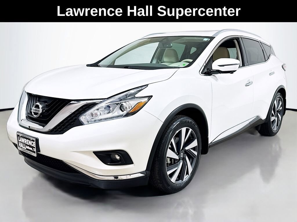 2018 Nissan Murano Platinum CVT with Xtronic, 11 Speakers, 4-Wheel Disc Brakes, 4.667 Axle Ratio, ABS brakes, Accessory Illuminated Kick Plates, Activation Disclaimer, Air Conditioning, Alloy wheels, AM/FM radio: SiriusXM, AM/FM/CD/MP3/WMA Audio System, Apple CarPlay/Android Auto, Auto tilt-away steering wheel, Auto-dimming Rear-View mirror, Automatic temperature control, Blind Spot Warning, Brake assist, Bumpers: body-color, Carpeted Floor Mats & Carpeted Cargo Mat, CD player, Child-Seat-Sensing Airbag, Climate-Controlled Front Bucket Seats, Compass, Delay-off headlights, Driver door bin, Driver vanity mirror, Dual front impact airbags, Dual front side impact airbags, Electronic Stability Control, Emergency communication system: NissanConnect Services, Four wheel independent suspension, Front anti-roll bar, Front Bucket Seats, Front Center Armrest, Front dual zone A/C, Front fog lights, Front reading lights, Fully automatic headlights, Garage door transmitter: HomeLink, Heated door mirrors, Heated front seats, Heated rear seats, Heated steering wheel, Illuminated entry, Illuminated Kick Plate, Knee airbag, Leather Appointed Seat Trim, Low tire pressure warning, Memory seat, Navigation System, NissanConnect Services Powered By SiriusXM, Occupant sensing airbag, Outside temperature display, Overhead airbag, Overhead console, Panic alarm, Passenger door bin, Passenger vanity mirror, Power door mirrors, Power driver seat, Power Liftgate, Power moonroof, Power passenger seat, Power steering, Power windows, Radio data system, Rear anti-roll bar, Rear reading lights, Rear seat center armrest, Rear window defroster, Rear window wiper, Remote keyless entry, Roof rack: rails only, Security system, Special Paint - Pearl White, Speed control, Speed-sensing steering, Speed-Sensitive Wipers, Splash Guards, Split folding rear seat, Spoiler, Steering wheel memory, Steering wheel mounted audio controls, Tachometer, Telescoping steering wheel, Tilt steering wheel, Traction control, Trip computer, Turn signal indicator mirrors, Variably intermittent wipers, Ventilated front seats, Wheels: 20 Machined Aluminum-Alloy, CVT with Xtronic.